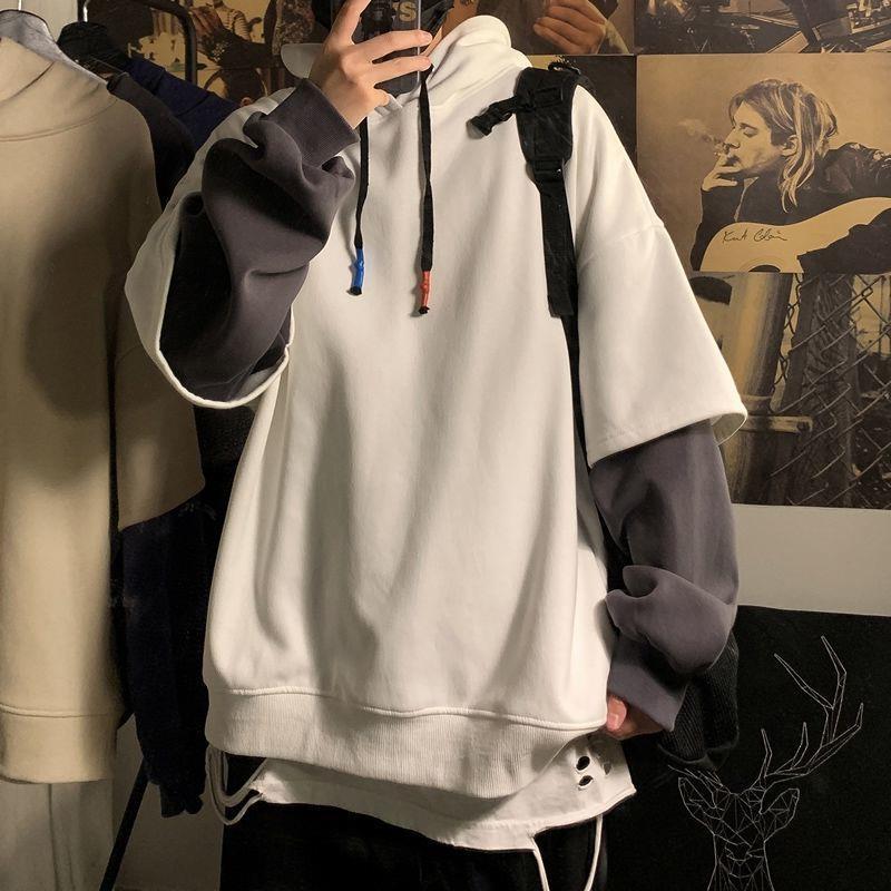偽の2つのパーカーの男性の潮のinsの潮流のゆったりしているカップルの服装は帽子の長袖の秋冬まで厚くて韓国版の学生のコートを厚くします。