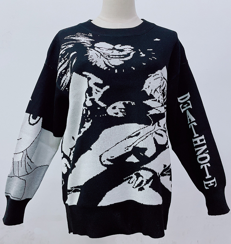 国潮セーター男女ins秋潮牌丸首アニメゆるいニット男女カップル暗黒系