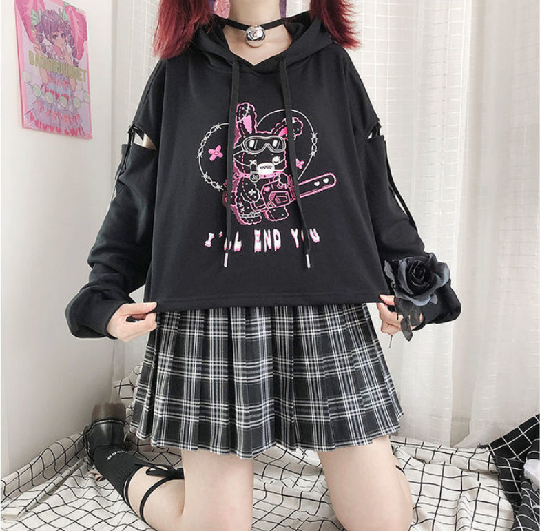 【チェーンソー狂兎】秋冬新作初高女学院風暗黒フード付きショートカーディガン