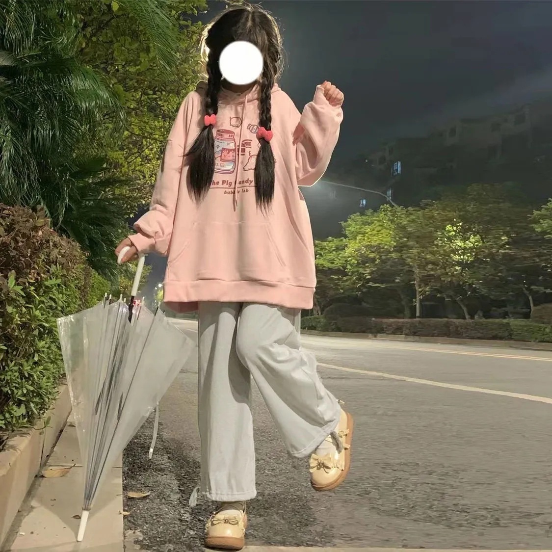 シングル/セット秋冬新作フード付き女子学生韓国版ゆるい + カジュアルパンツ2セットのベルベット潮