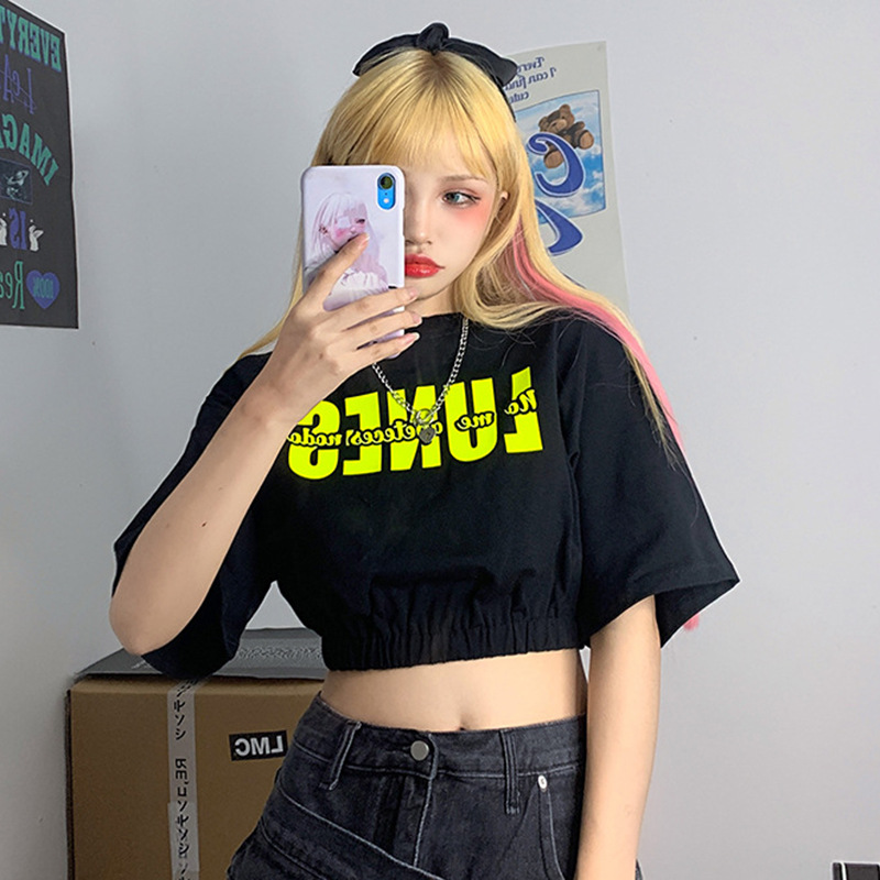 2022年夏新型欧米ins風アルファベットプリント半袖tシャツ高腰セクシーギャル揚げ街上着