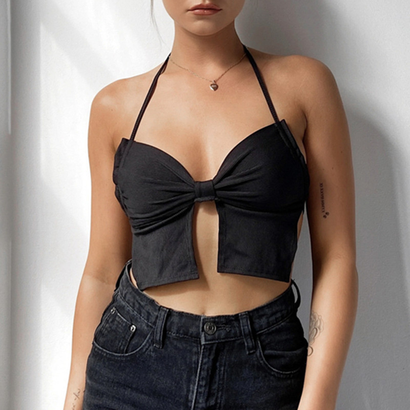 アマゾンの婦人服の夏の新型のセクシーな蝶結びのベストは首を掛けます。
