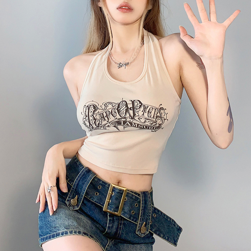 2022夏ファッション越境新品女装街頭風レトロアメリカンプリント超ショート首セクシーベスト