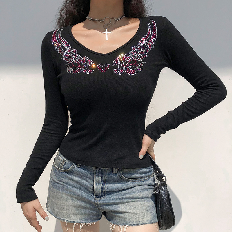 2021欧米の秋の気質の街頭の愛の翼はvネックの身を修める型の長袖の上着にアイロンをかけます。