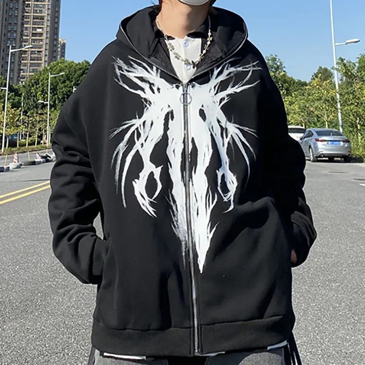 欧米のゴシック天使プリントヒップホップストリートのジッパーと帽子のパーカーy 2k男女のゆったりした大きいサイズのコート