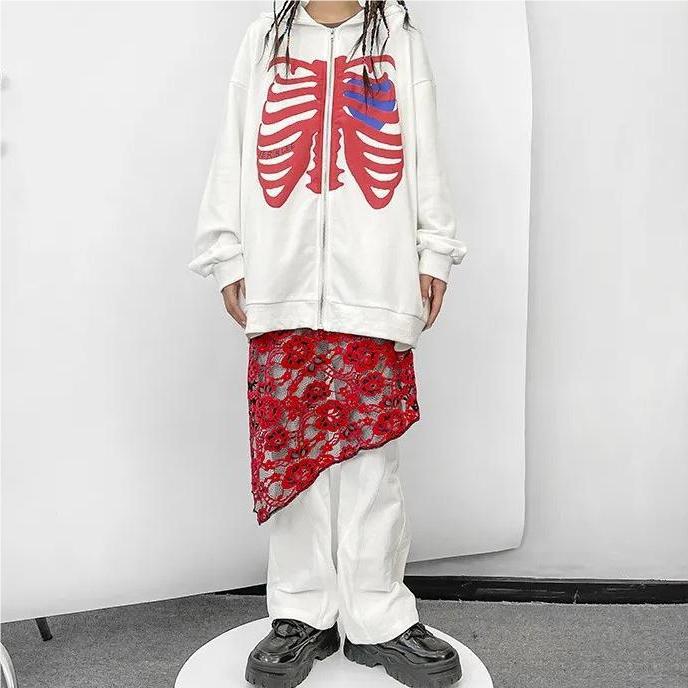2021欧米人頭プリントカーディガン街頭ファッションy2kジッパーフード付きコート女装