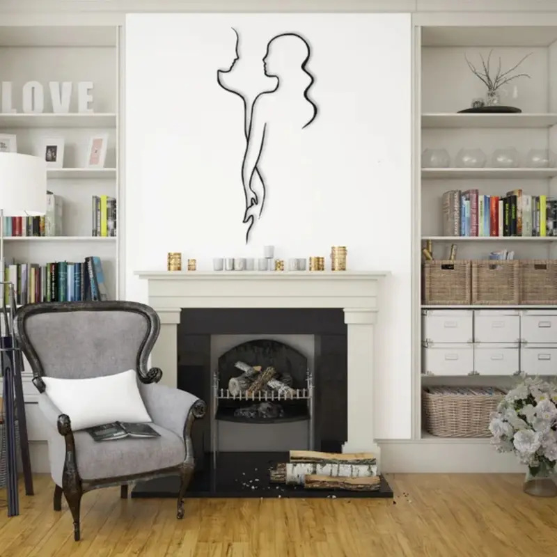工場直販ブラックメタル抽象カップルシルエット壁装飾モダンシンプルな鉄壁画背景壁装飾
