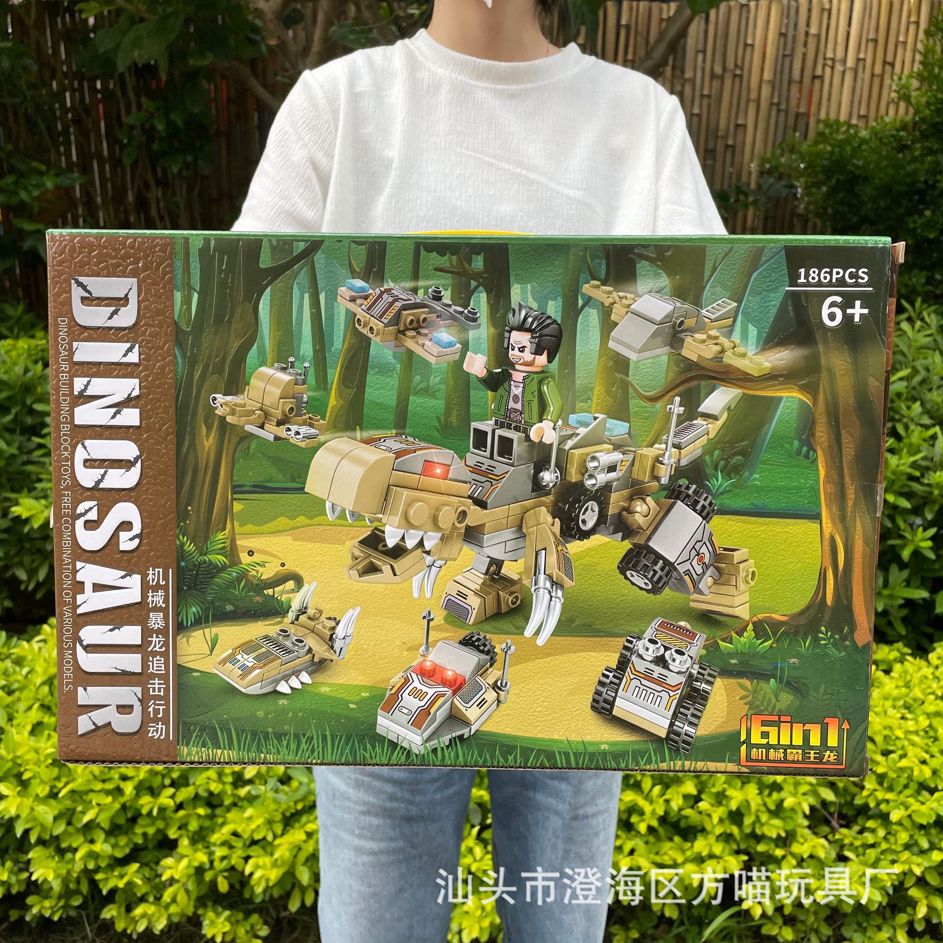 子供の益智の小さい粒子の積み木のおもちゃの機械の暴竜の追撃の行動は大きい箱の模型の男の子の贈り物をつなぎ合わせます。