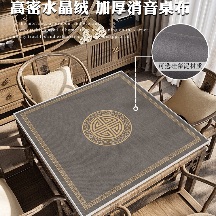 新中国式のマージャンは四角いテーブルを敷いてトランプをします。防音は厚い滑り止めのテーブルクロスです。