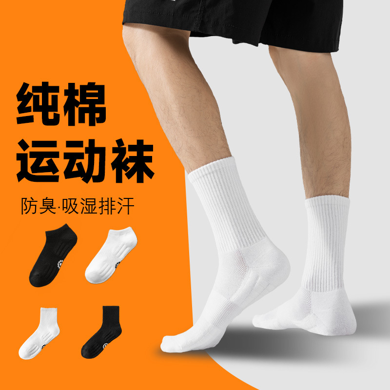 靴下事如意男子靴下純綿タオル底厚手ミドルソックス黒男子バスケットボールストッキングランニングスポーツソックス