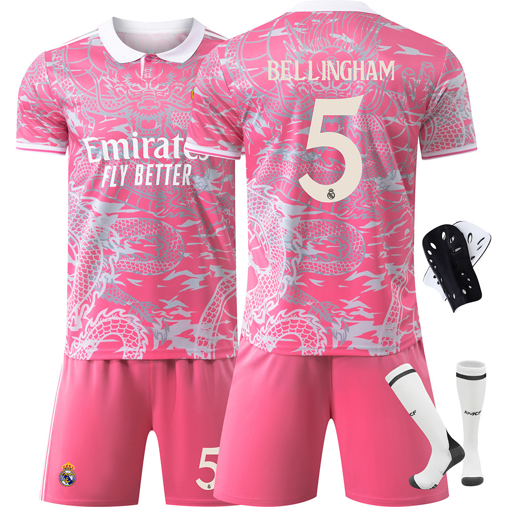 2526 クロスボーダー レアル・マドリード ドラゴン柄サッカーユニフォーム 7ヴィニシウス 9ムバッペ 11ロドリゴ Cロナウド 7番 ピンクジャージ