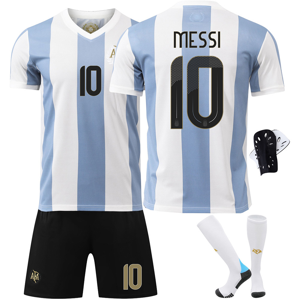 2425アルゼンチン代表ユニフォーム10番メッシ記念版サッカーユニフォーム夏用半袖子供大人セットジャージ