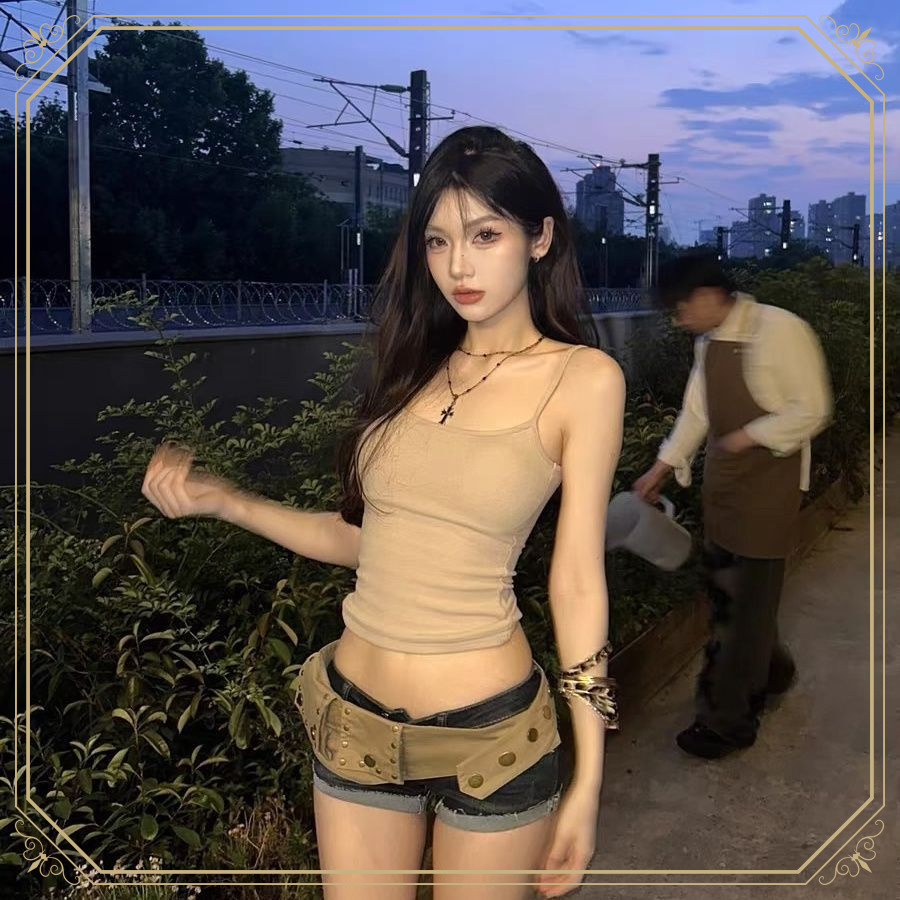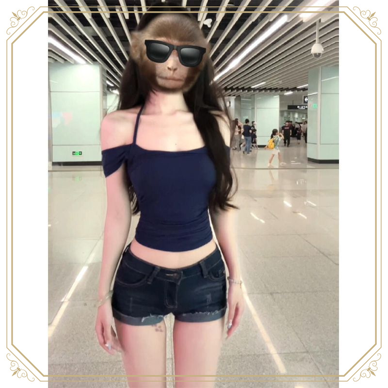 セクシーなホットガールホルターネックオフショルダー半袖Tシャツ女性のための夏の純粋な欲望ホットガールタイトフィットハイウエストショートトップ