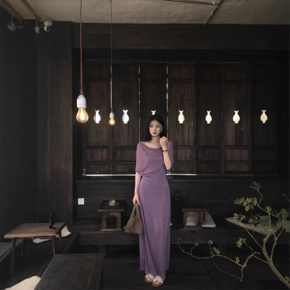 夏の新しいファッションライトラグジュアリーエレガントドレスエレガントで大人なウエストホットスタイルシンプルニッチスリムロングスカート女性用