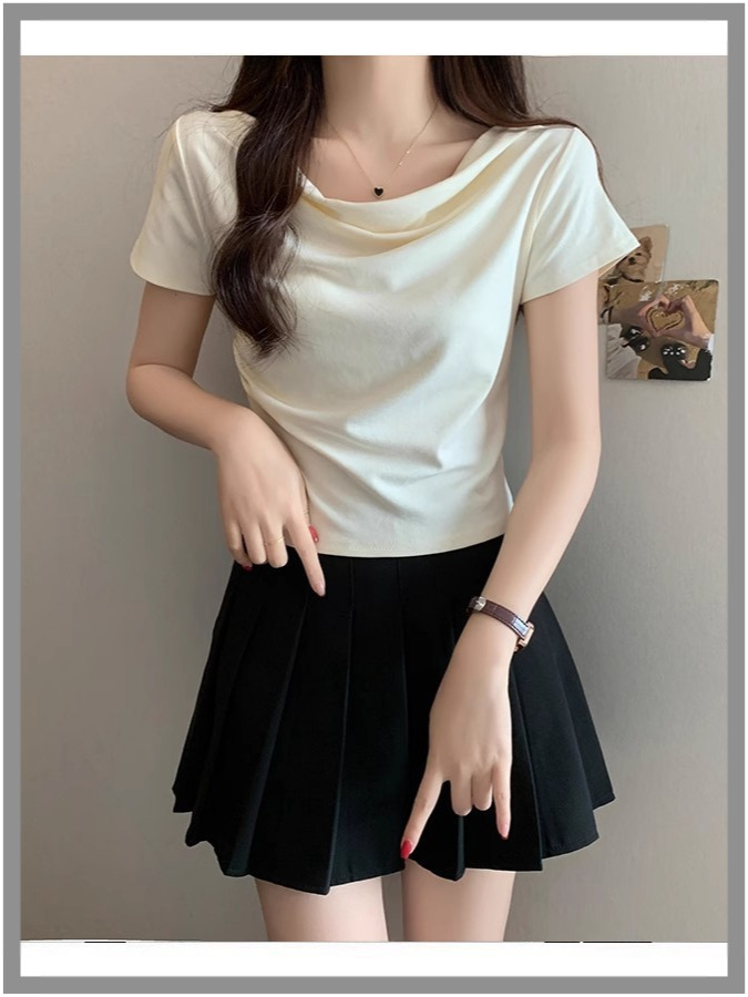 ホワイトスタックウエストVネック半袖右肩レディースTシャツ夏の純粋な欲望スタイルホットガール痩身スリムクールトップ