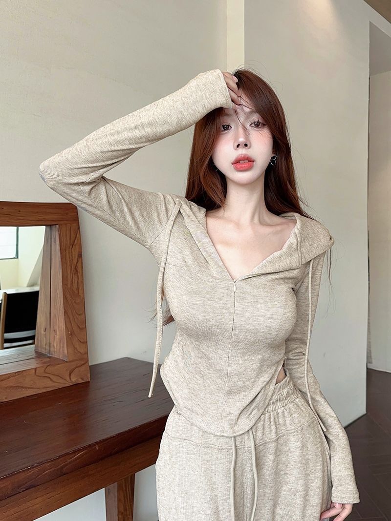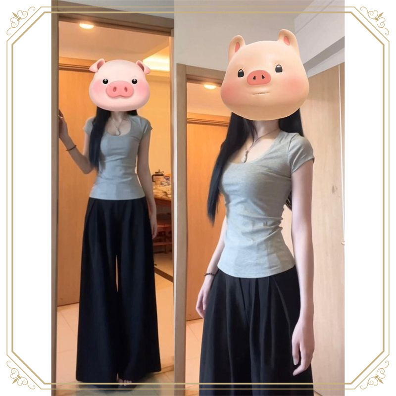 Pure Desire グレー U ネックショルダー半袖 Tシャツ女性の夏スリムフィットタイトウエスト多用途ホットガールショートトップ