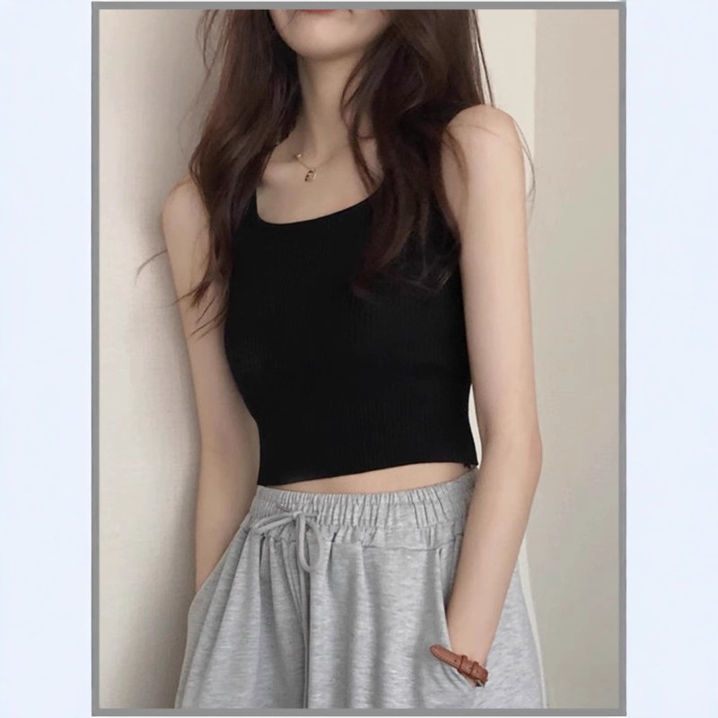 新しい黒のラウンドネック夏の女性のキャミソール、ノースリーブシャツ、おへそ露出ホットガールショートボトムトップ