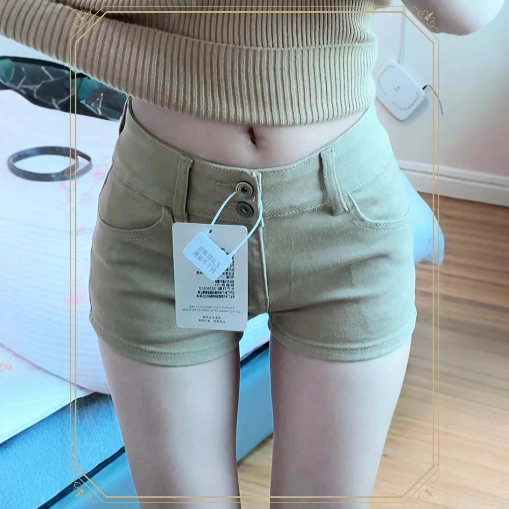 アメリカンハイストリートカーキデニムショートパンツ女性用 2025 夏の新しい多用途ホットガール痩身ヒップカバーアラインメントホットパンツ