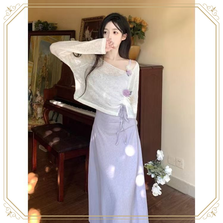 2025 春夏甘くて爽やかなフレンチカレッジ無地スカートスーツ紫サスペンダー薄手ブラウス mm 甘辛リリス