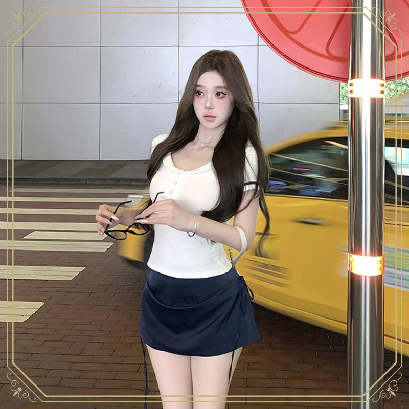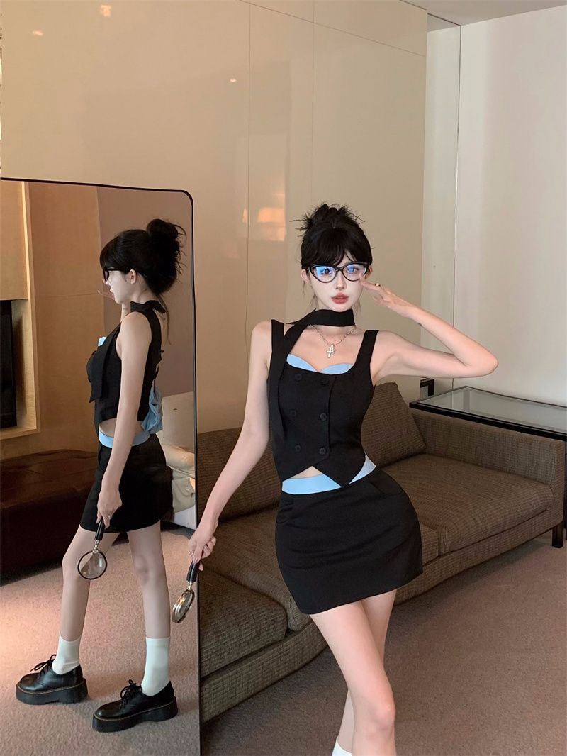 女性用5月1日旅行服スーツ、夏用リボンベスト、トップス、純粋な欲望ヒップカバーショートスカート2点セット