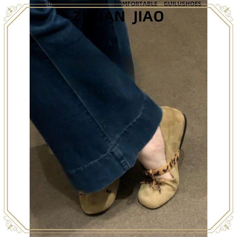 复古内增高浅口单鞋女2025春季新款法式豹纹蝴蝶结芭蕾舞玛丽珍鞋