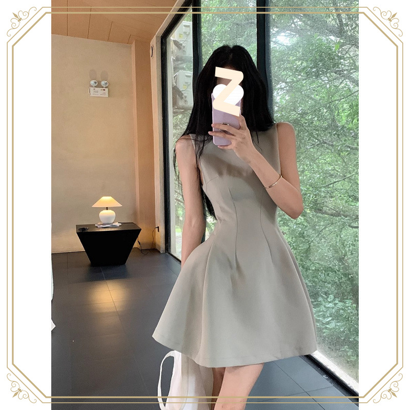 小个子甜美短裙女夏季新款收腰显瘦设计感纯色无袖背心气质连衣裙