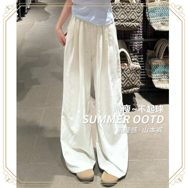 アイスシルクミルク山本パンツ女性の夏薄いハイウエストスリムストレートレッグ小柄カジュアルクールワイドレッグパンツ