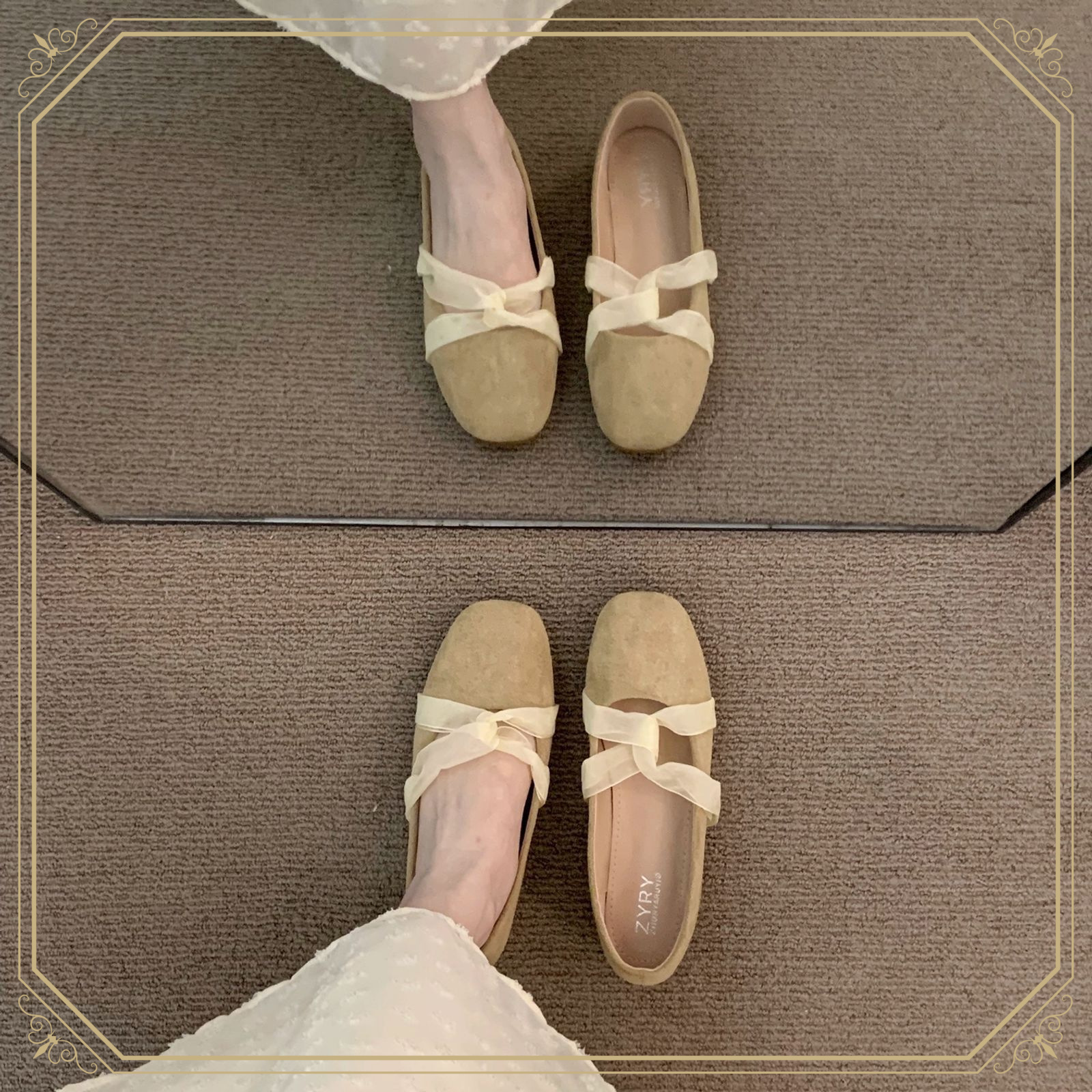 フレンチスタイルスカート付きカーキ気質バレエビルケンシュトックシューズ女性アウターウェア2025夏スカート付き優しいおばあちゃんの靴