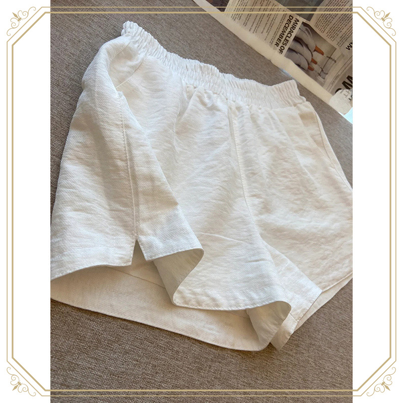 夏用の女性用白いスリット入り通気性ショーツ、薄くてゆったり、小柄な人向けの万能なAラインスリムカジュアルパンツ、綿なし