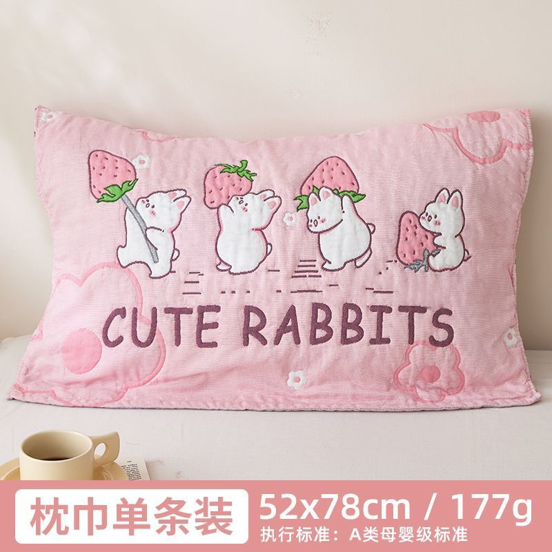 枕カバーのペア、多層ガーゼ、肌に優しい、ハイエンドの漫画のかわいい家庭用ソフト、通気性、厚みのある枕カバー