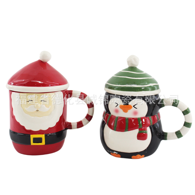 セラミックサンタクロースマグカップペンギンコーヒーカップ蓋付き水飲みカップクリエイティブ誕生日クリスマスプレゼントカップ