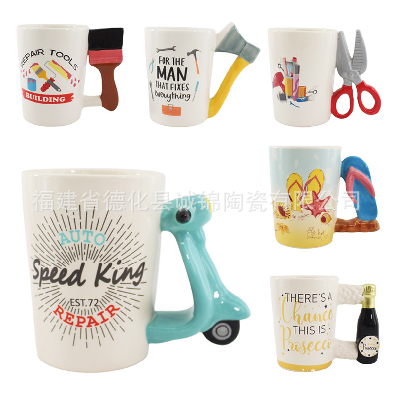 クリエイティブセラミック異形ハンドルカップ工具ハンドルセラミックカップオートバイはさみスリッパボトルコーヒーカップ