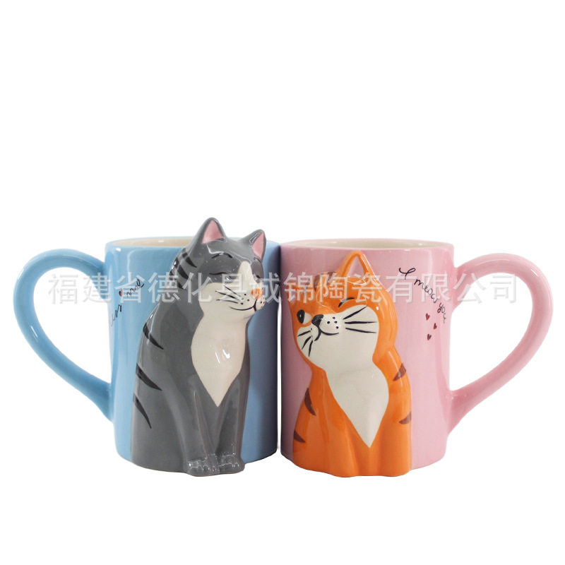 クリエイティブセラミック猫カップルカップ3dアニメ猫カップかわいい猫陶磁器カップ浮き彫りマグカップ