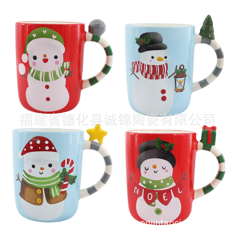 陶磁器のクリスマスの雪だるまの杯のクリスマスの旦那のマグカップのかわいい漫画のサンタクロースの祝日の水の杯のヘラジカの杯