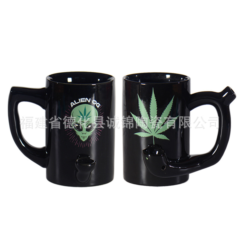クリエイティブセラミックパイプカップストロー喫煙カップ多機能カップパイプコーヒーカップ宇宙人マグカップ