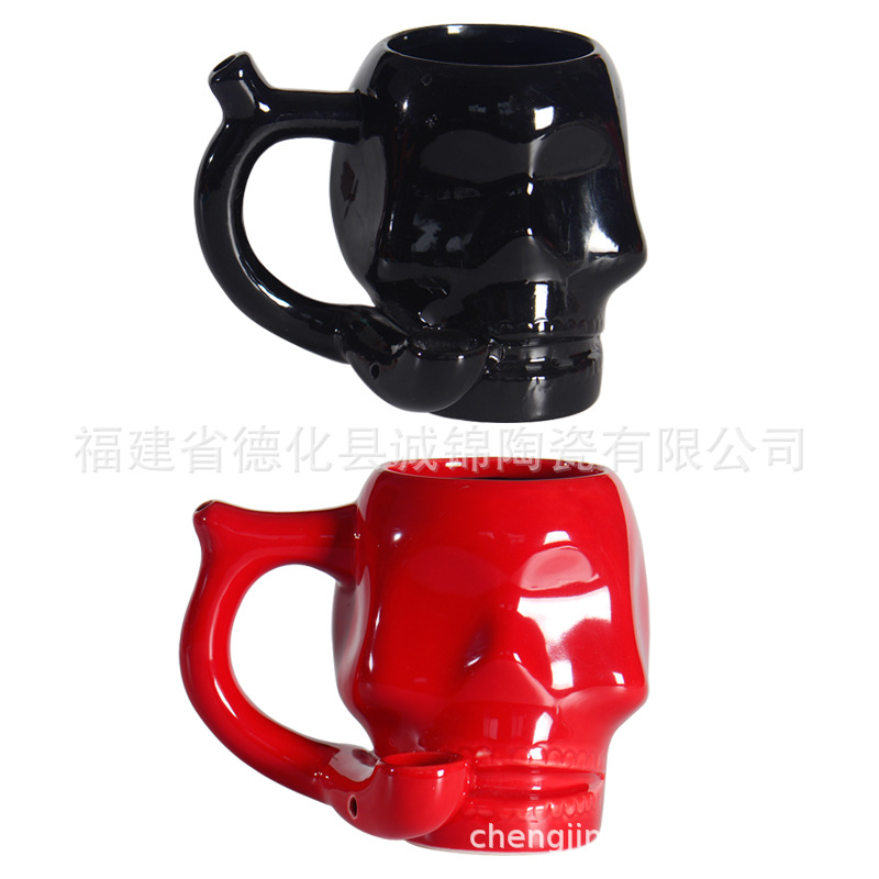 セラミックスカルパイプカップスカルマグカップ吃烟カップ多机能パイプカップセラミックパイプコーヒーカップ