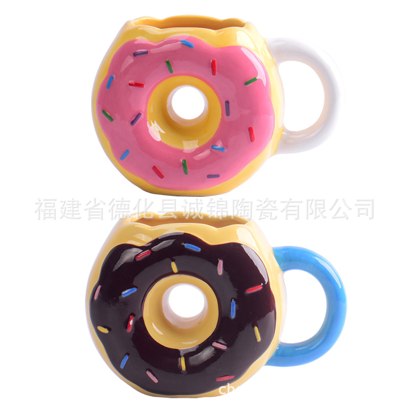 クリエイティブセラミックドーナツカップセラミックデザート水カップコーヒーカップ家庭用オフィス水セラミックカップ