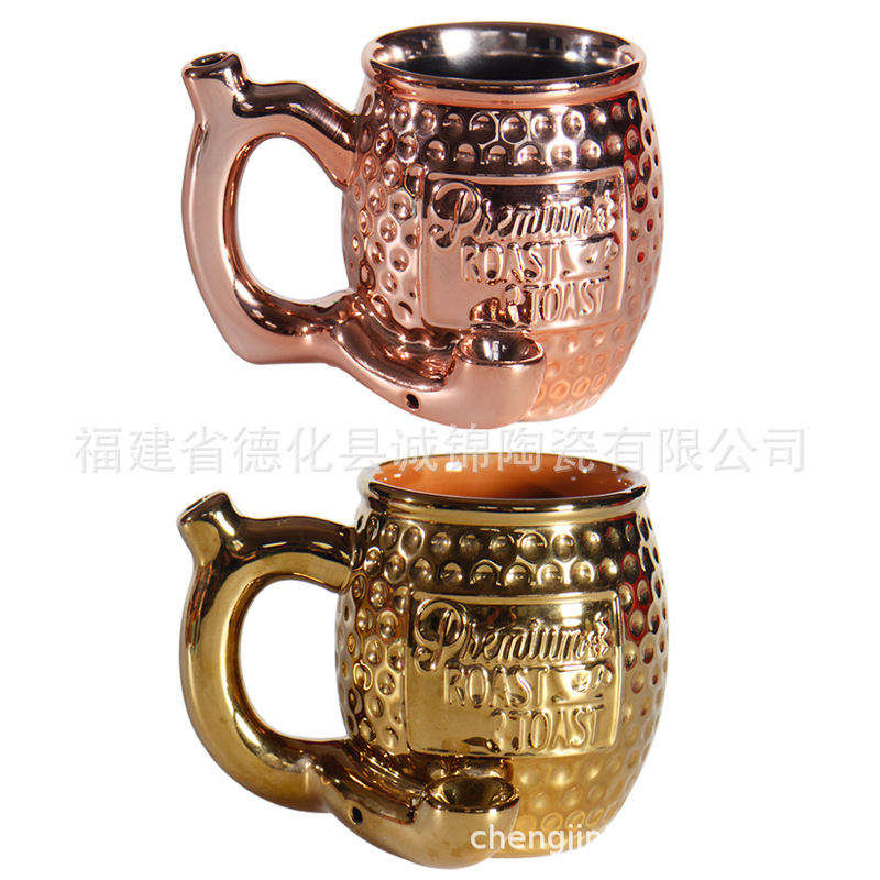 セラミック電気めっきパイプカップハンマー柄カップたばこ口付き喫煙カップ多機能パイプカップセラミックパイプコーヒーカップ