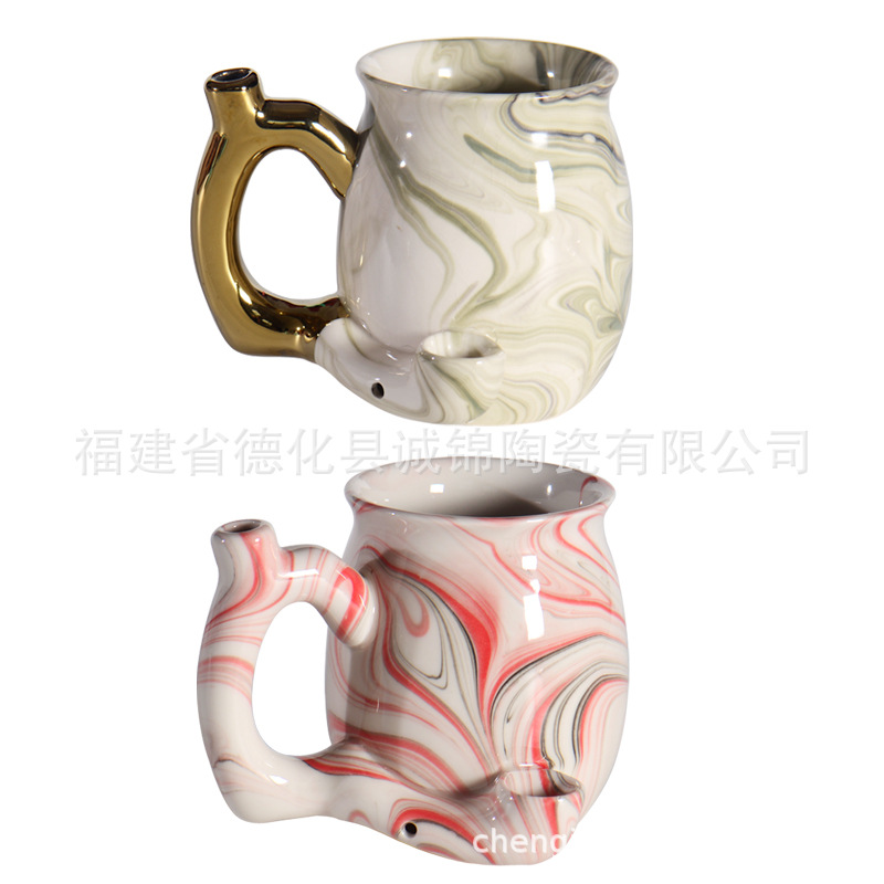 クリエイティブセラミック大理石パターンパイプカップ水タバコカップ喫煙カップ多機能パイプカップセラミックコーヒーカップ
