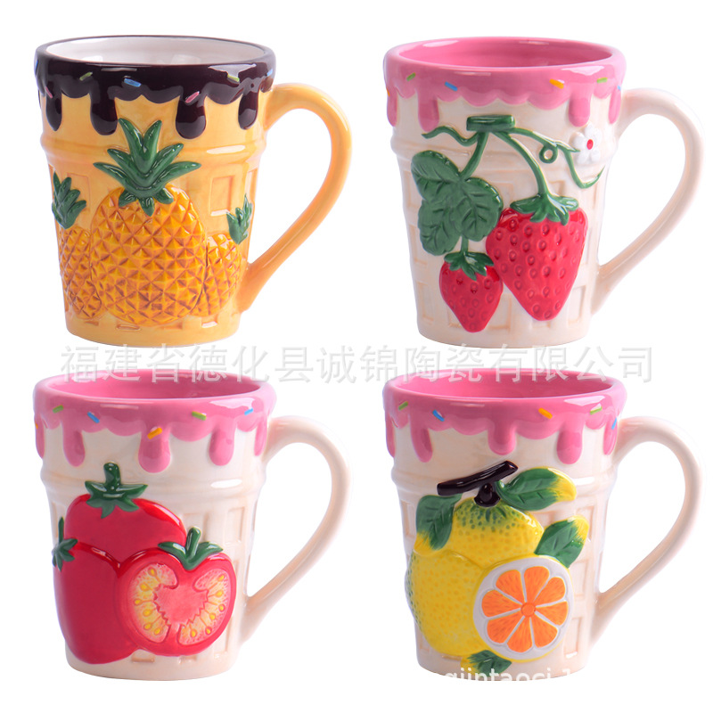 セラミックフルーツシリーズカップクリエイティブフルーツマグカップイチゴカップパイナップルマグカップ手描きカップ