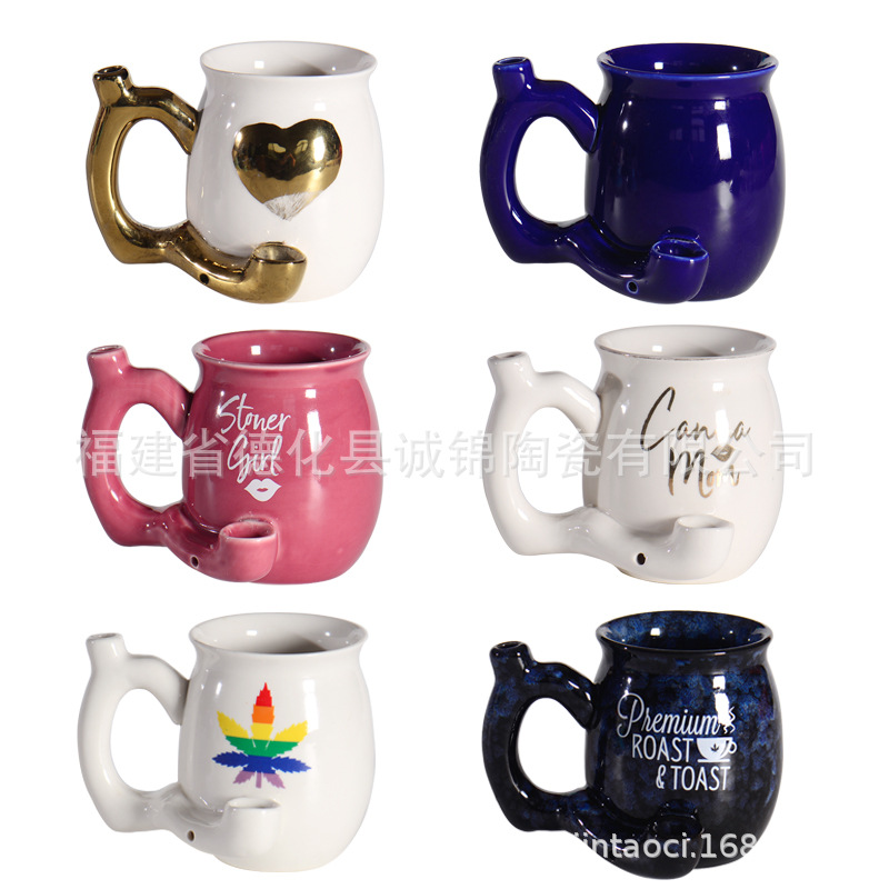 クリエイティブセラミックパイプカップ水タバコカップ喫煙カップ多機能パイプカップセラミックパイプコーヒーカップクロスボーダー