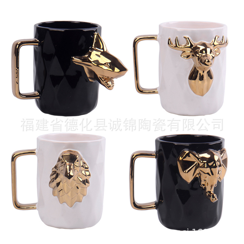 クリエイティブセラミックレリーフ動物マグカップ3d動物カップメッキヘラジカ動物カップサメレリーフカップ