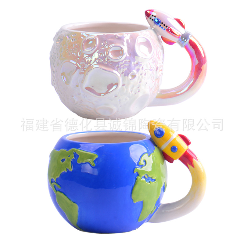 浮き彫り星マグカップクリエイティブロケット陶磁器カップ月マグカップ女子高颜値カップロゴ