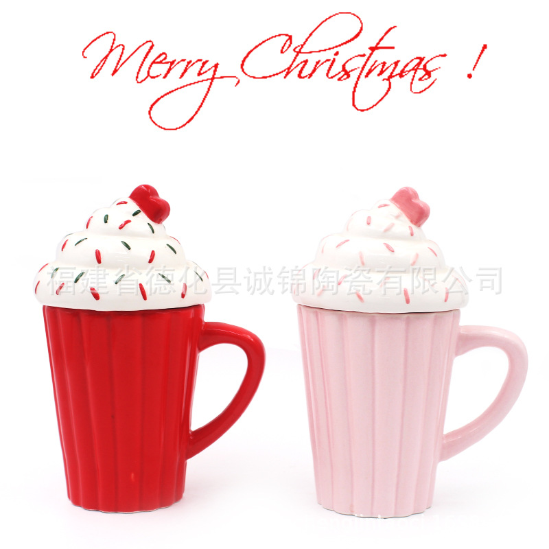 クリエイティブクリスマスセラミックマグカップギフト蓋付きクリスマスキャンディーカップ祝日アイスクリームカップコーヒーカップ