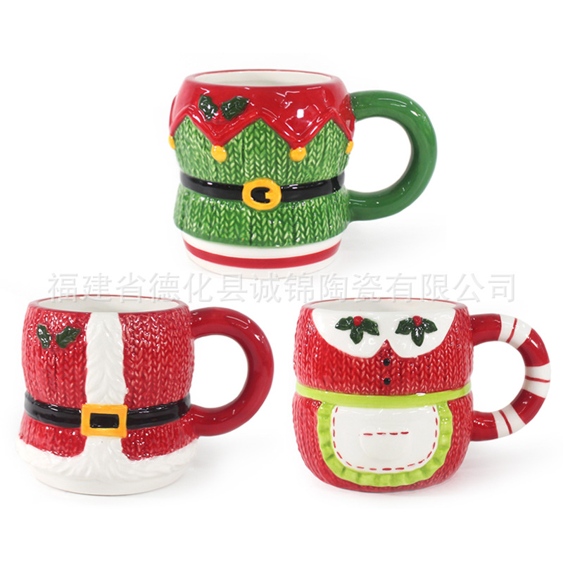 クリエイティブクリスマスマグカップクリスマスツリー陶磁器カップ高颜値セーター蓋ストロー付き陶磁器カップカップルカップ