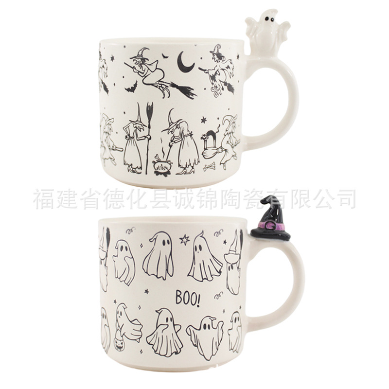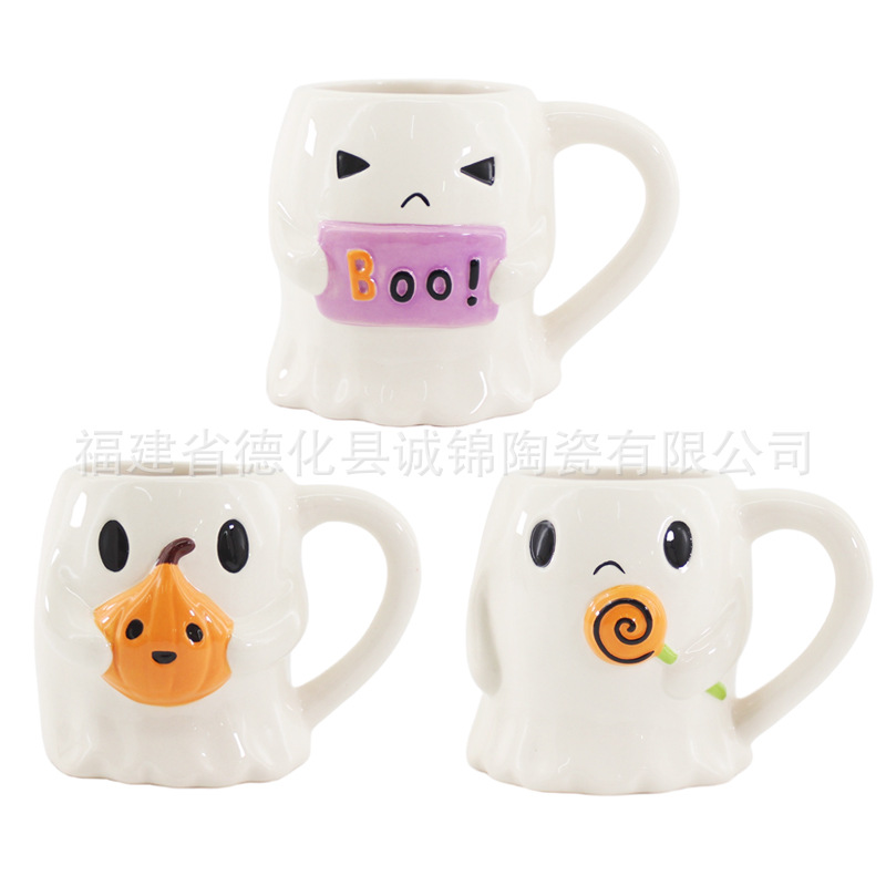 セラミックシルク印刷イースターマグカップクリエイティブ3dハンドルカップ幽霊マグカップ祝日カップコーヒーカップ