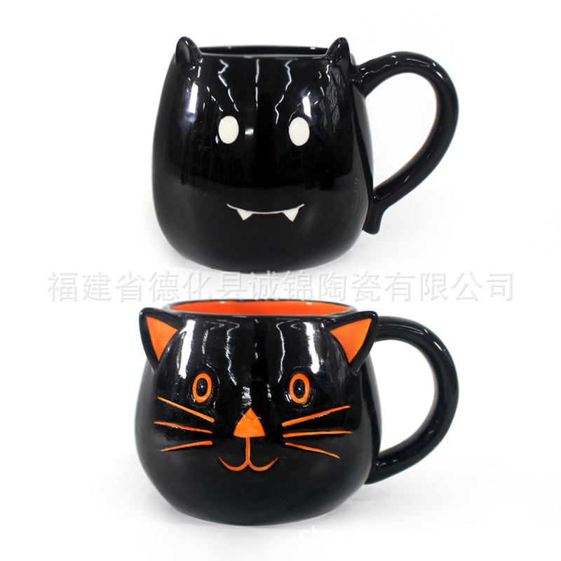 ハロウィーン猫カップ陶磁器鬼祭りカップ3d猫コーヒーカップハロウィーン幽霊カップはロゴを付けることができる
