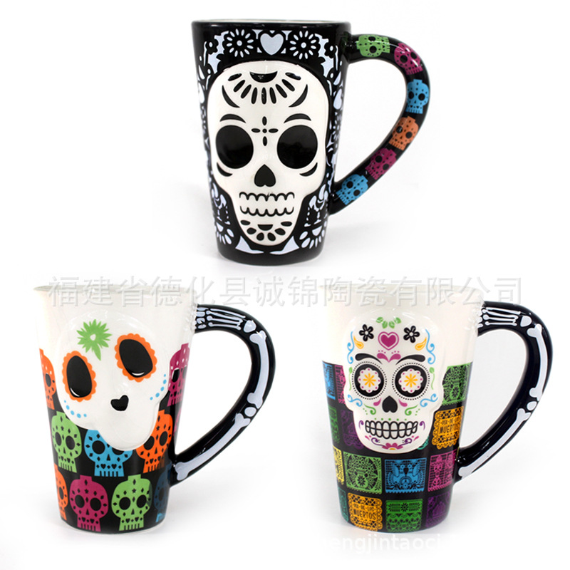 ハロウィーン頭蓋マグカップ鬼節カップ陶磁器カップ祝日カップコーヒーカップはロゴを付けることができる