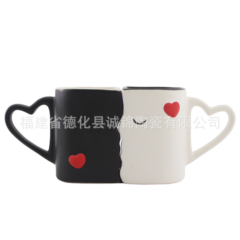 クリエイティブ陶磁器カップル対カップバレンタインデーマグカップ3dキスカップかわいい陶磁器カップ浮き彫りマグカップ