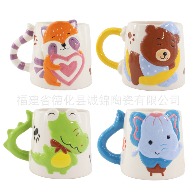 クロスボーダー萌えペット動物マグカップ動物レリーフ水カップかわいいワニマグカップ象水カップ動物水カップ